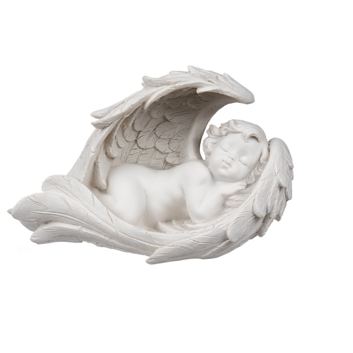 Este lindo anjo adormecido envolto nas suas asas traz uma energia de paz, proteção e aconchego para qualquer ambiente.