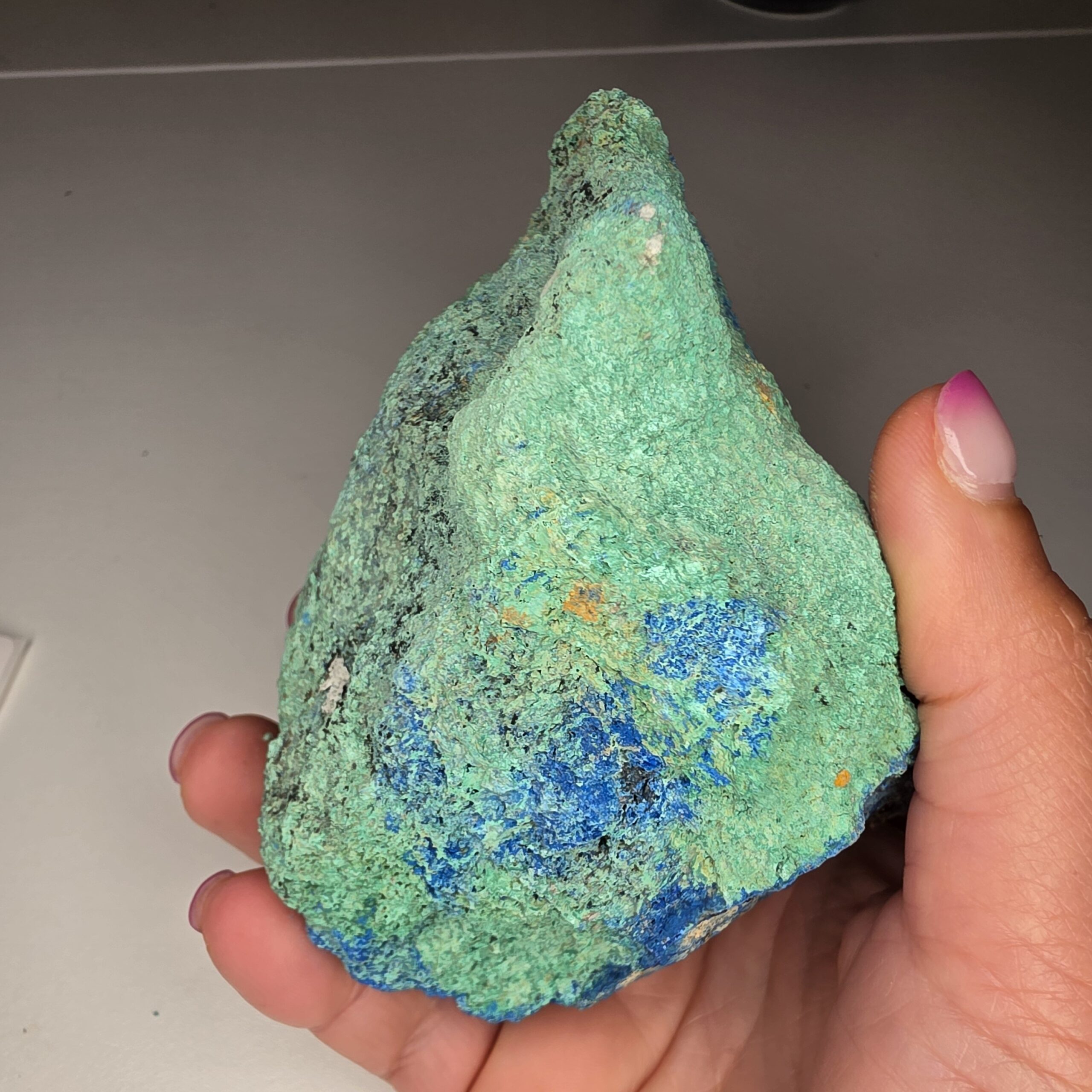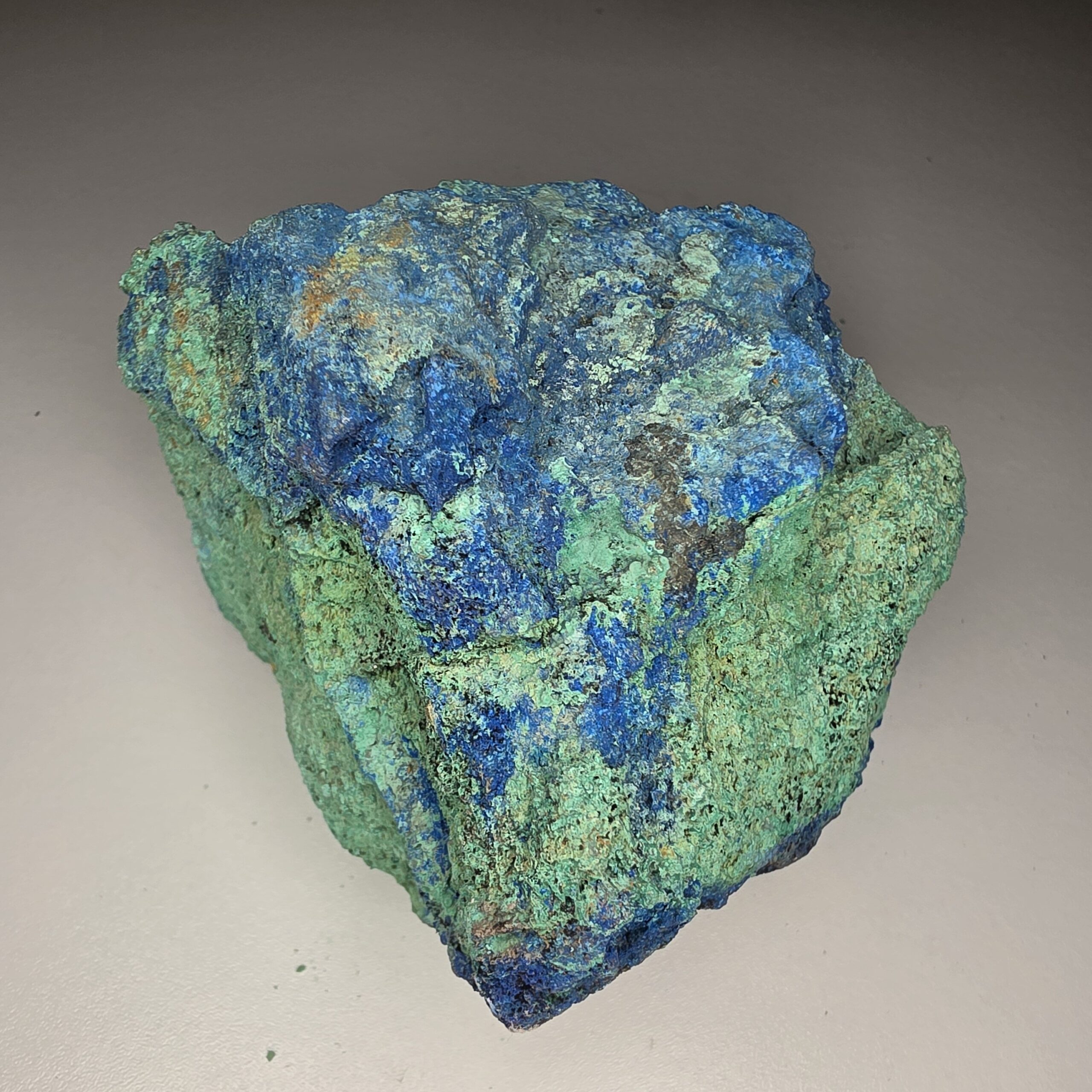 A Azurita é um mineral encontrado nos depósitos de cobre a céu aberto. Possui uma cor azul muito característica e cristalizada em forma maciça, nodular, estalactítica.