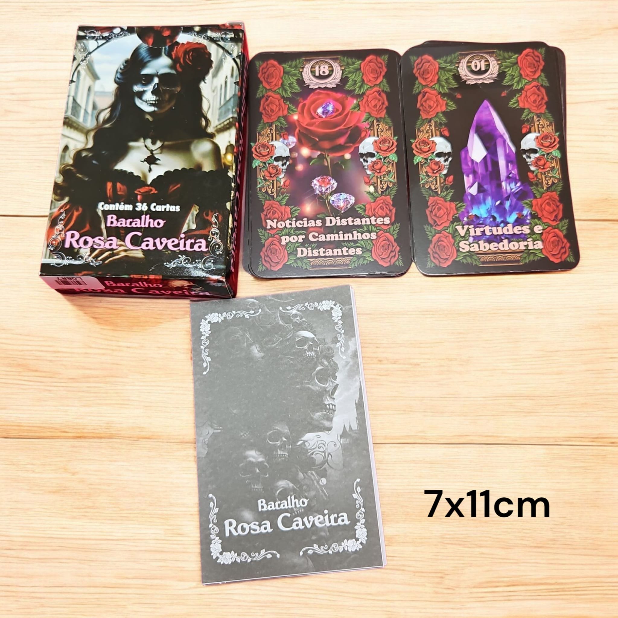 Baralho de 11cm com 36 cartas.