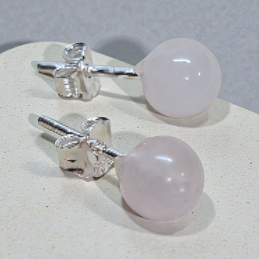 Delicados e femininos, estes brincos de Quartzo Rosa natural com 6 mm são montados em Prata de Lei 925, trazendo um toque suave de luz e energia amorosa ao seu dia-a-dia.