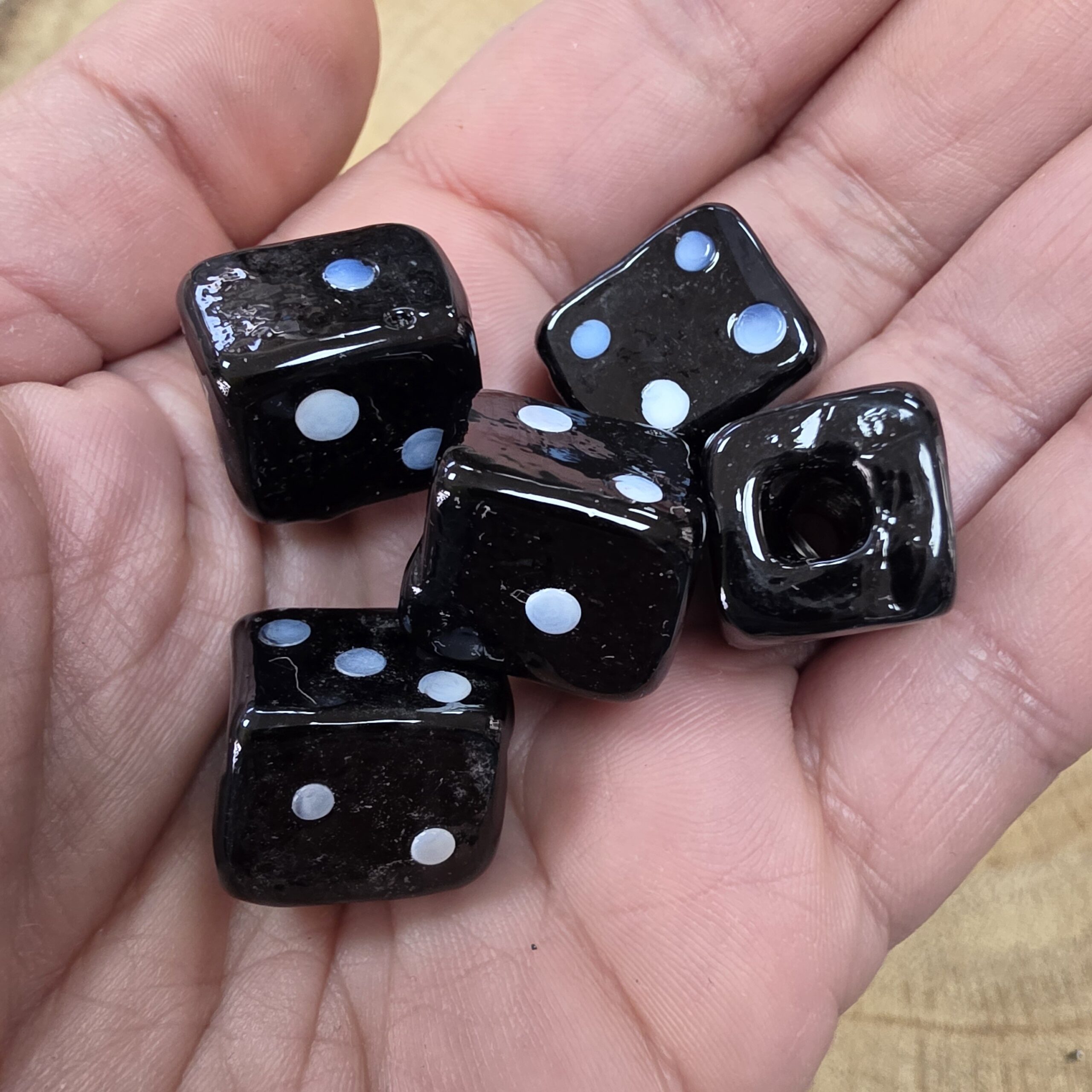 firma em formato de dado para guias de Umbanda é utilizada na montagem de fios de contas espirituais, funcionando como ponto de força e proteção dentro da guia.
