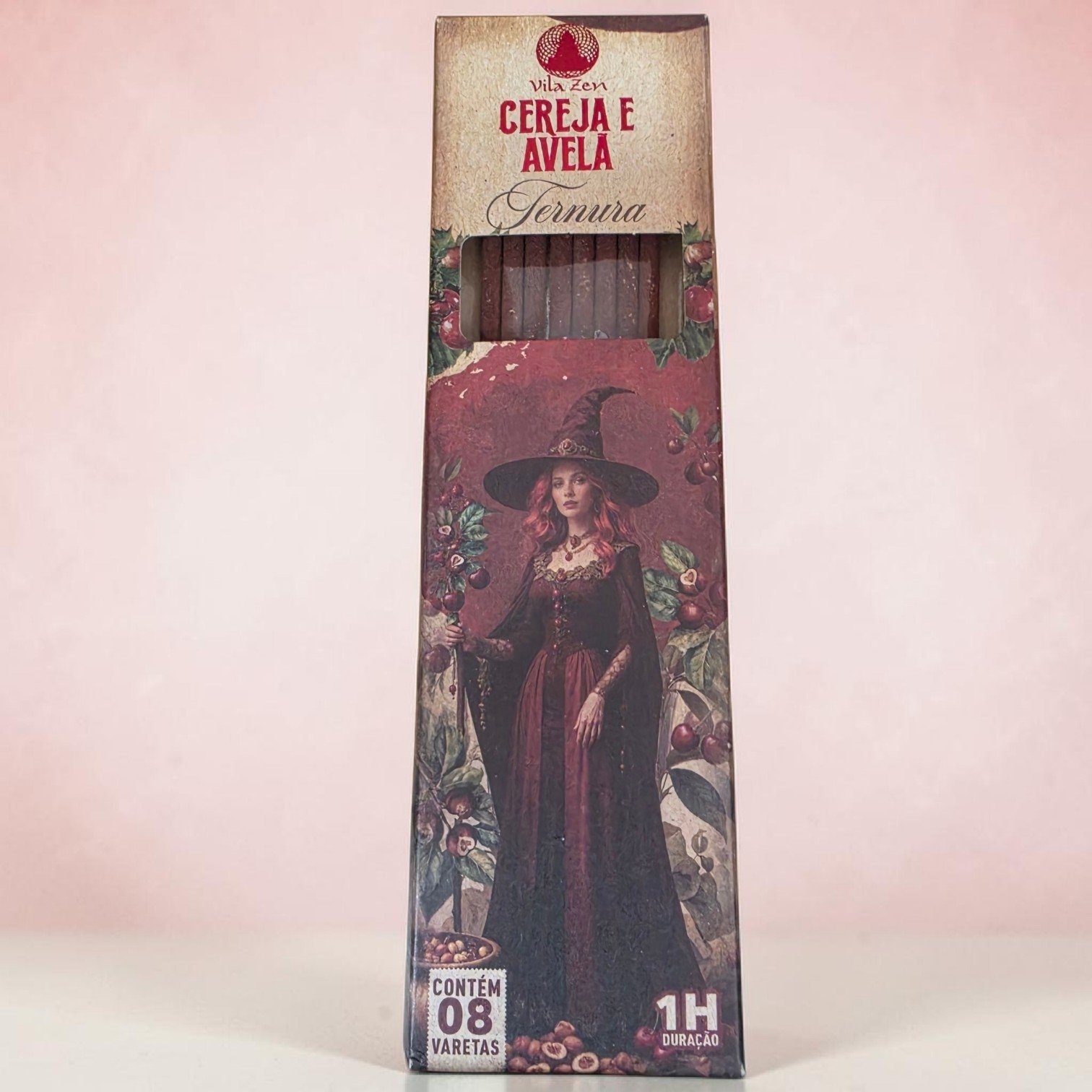 Incenso Cereja e Avelã da Vila Zen combina notas doces e envolventes que criam uma atmosfera de conforto, ternura e bem-estar emocional. O seu aroma quente e acolhedor é perfeito para momentos de relaxamento, carinho e conexão afetiva.