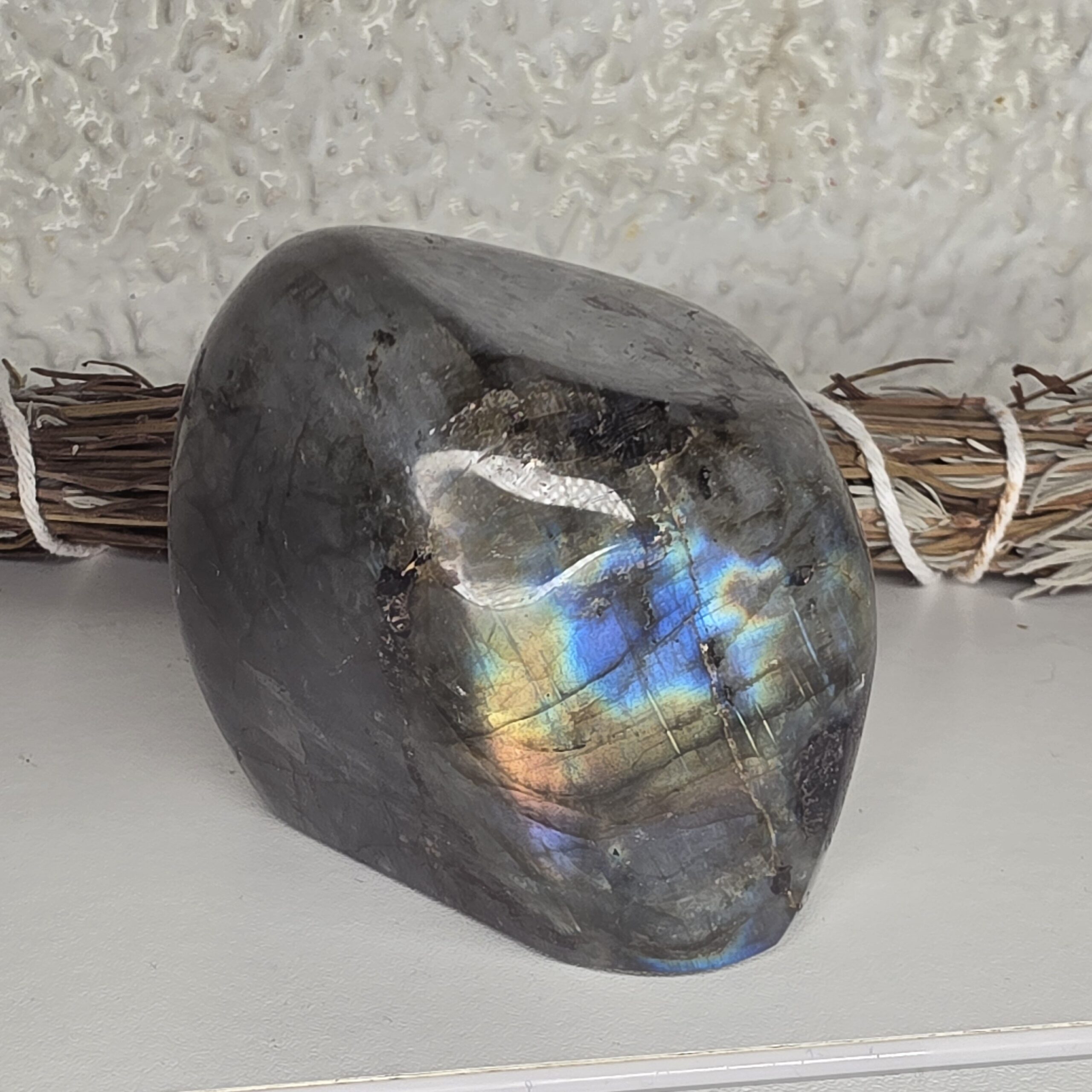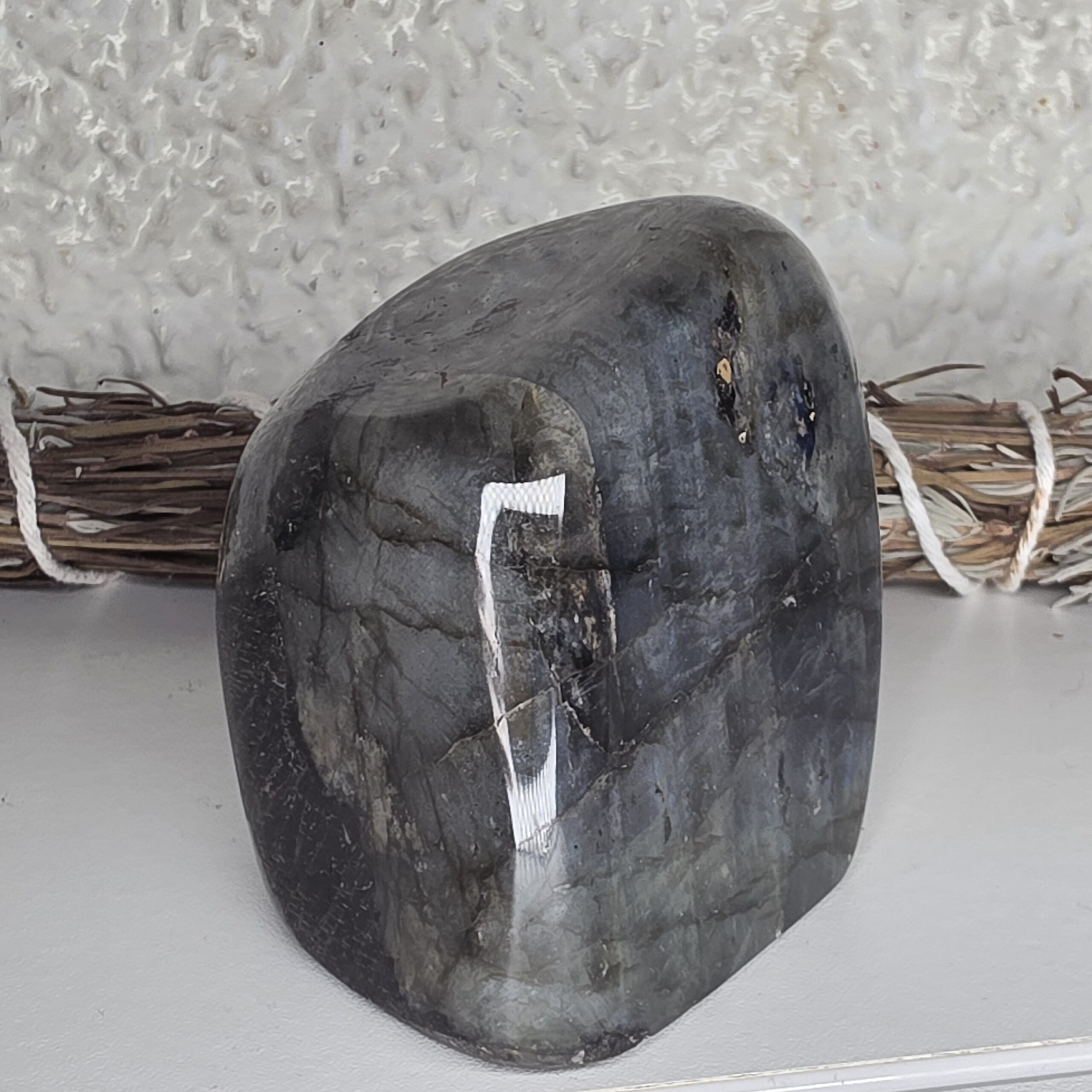 Labradorite é conhecida como a pedra da proteção espiritual e da intuição, muito procurada por quem trabalha com energia, espiritualidade ou simplesmente quer proteger o seu campo energético no dia a dia.