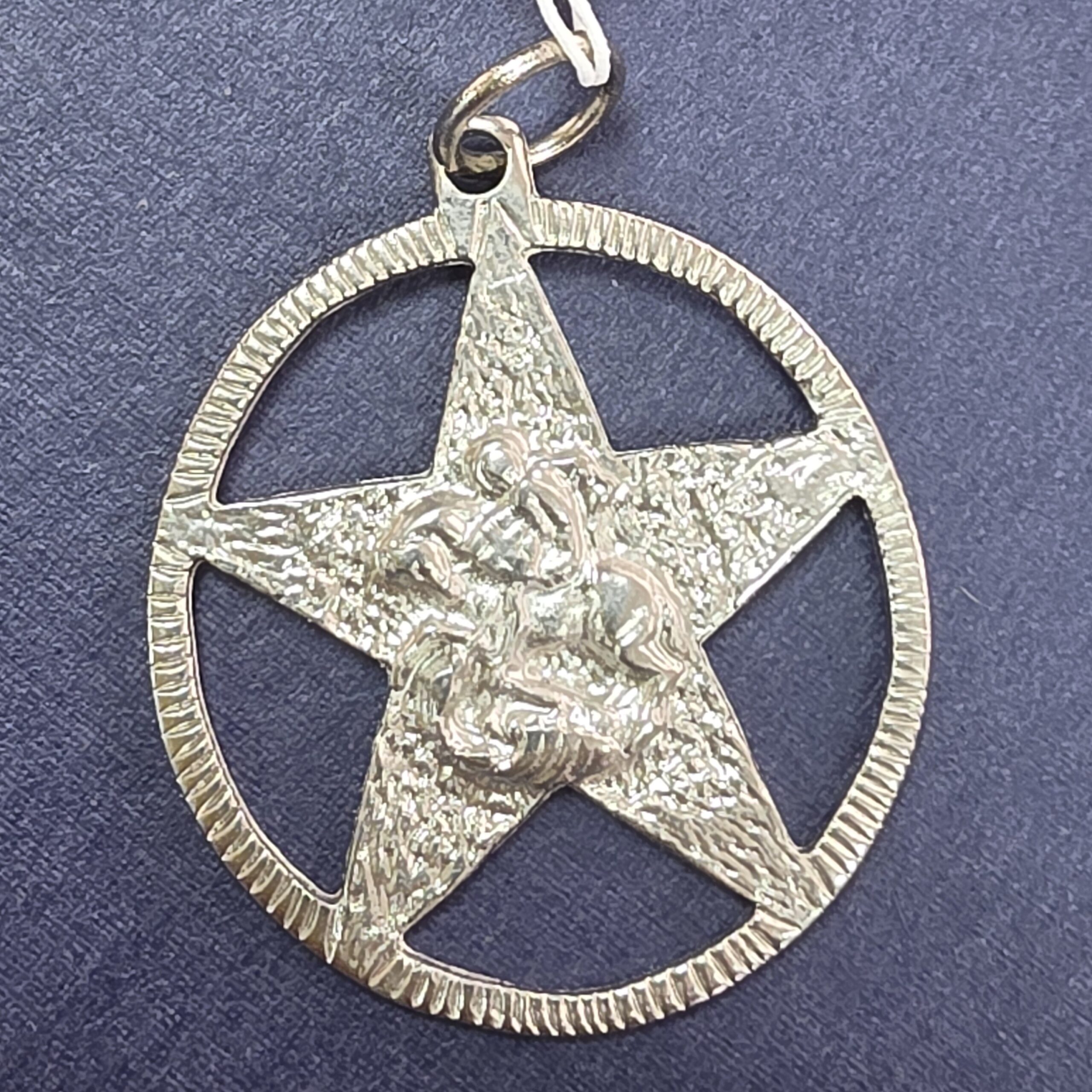Este pingente com pentagrama e São Jorge une dois símbolos poderosos de proteção: o pentagrama, associado ao equilíbrio e defesa energética, e São Jorge, símbolo de coragem, fé e vitória sobre o mal.